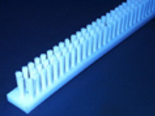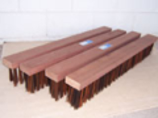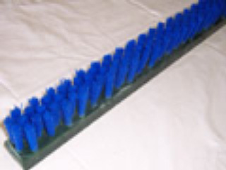 These brushes are made by stapling knots of fill material into pre drilled timber, nylon, polyethylene or other suitable materials. Depending on applications and width of strip, a variety of fill patterns and densities can be designed to suit all applications. Fill materials can be made short for hard aggressive brushing or long for soft sweeping. Flexi back strip in 8mm x 8mm and 15mm x 15mm can be made in continuous lengths up to 100m long. Punch hole sizes can vary from 3mm to 9.5mm.